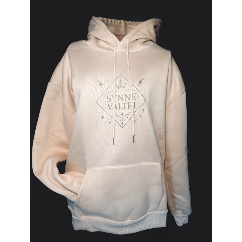 Beež, eest taskuga pusa. Materjal sünteetiline, seest fliis. Suurus XL. Synne Valtri logo rinnal kuldse trükiga. Õrn pesu! Pusa on lohvakas.