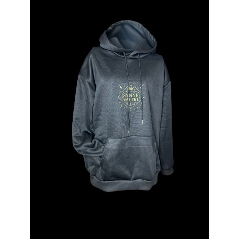 Must, eest taskuga pusa. Materjal sünteetiline (polüester), seest fliis. Suurus XL. Synne Valtri logo rinnal kuldse trükiga. Pusa on lohvakas. Õrn pesu!